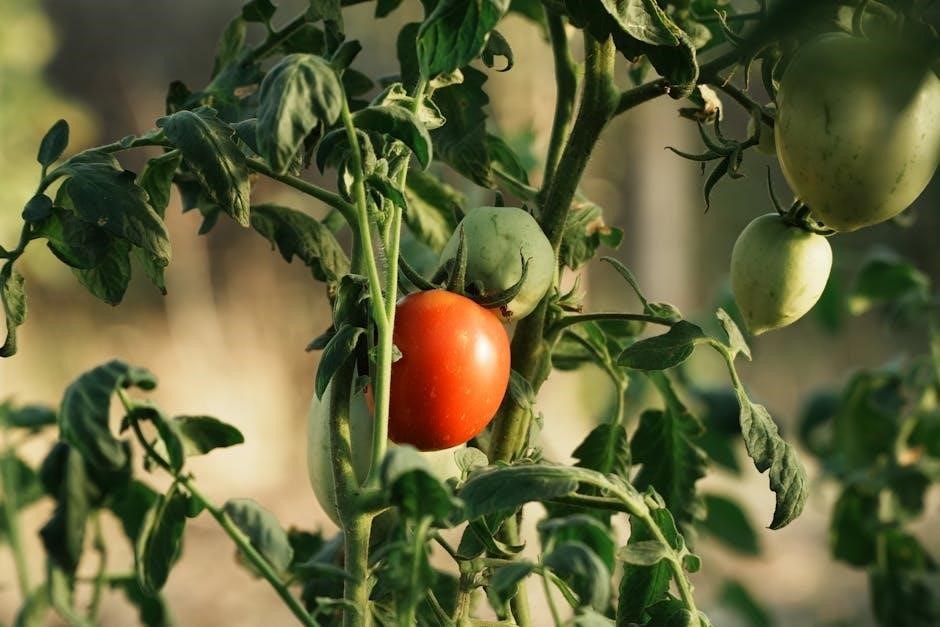 Staking or caging is essential for support, preventing fruit from touching the ground and reducing disease risk․ Water deeply and consistently, avoiding wetting the foliage․ Fertilize regularly with a tomato-specific fertilizer, rich in phosphorus and potassium․ Monitor for common pests like whiteflies and aphids, employing organic control methods when possible․ Prune suckers to encourage fruit development and improve air circulation․ Harvesting begins when fruits are fully colored and slightly soft to the touch․